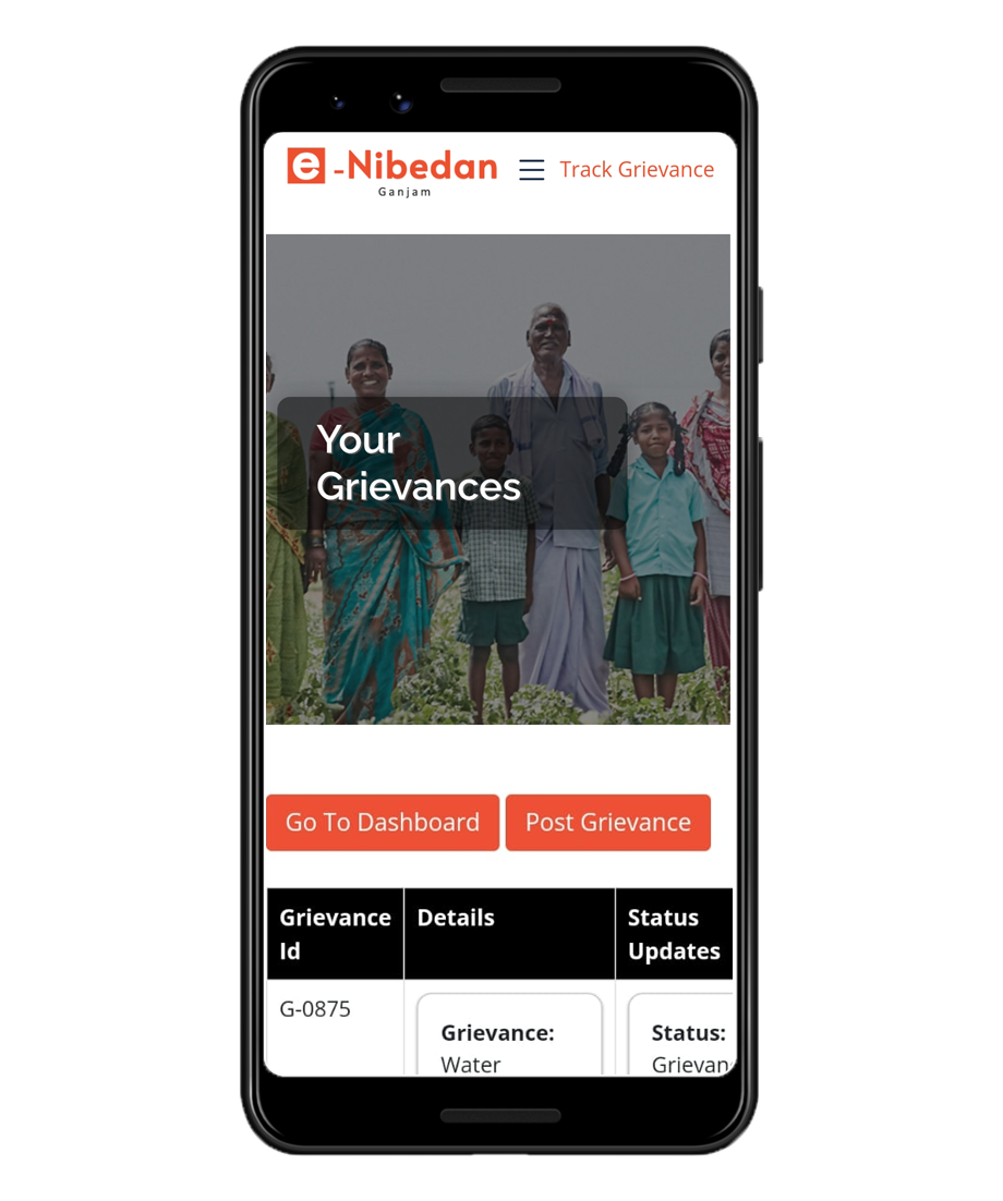 ଉଦ୍ଦେଶ୍ୟ: ଗଞ୍ଜାମ ଜିଲ୍ଲାର ନାଗରିକମାନଙ୍କୁ ମୋବାଇଲ୍ ଫୋନ୍ କିମ୍ବା କମ୍ପ୍ୟୁଟର ମାଧ୍ୟମରେ ଅଭିଯୋଗ କରିବାକୁ ଅନୁମତି ଦେଇ ଏହି ପୋର୍ଟାଲ୍ ତିଆରି କରାଯାଇଛି।ଏହା ଯେ କୌଣସି ସ୍ଥାନରେ ଦେଖାଯିବା ଏବଂ ଏକ ଶାରୀରିକ ଅଭିଯୋଗ ଦାଖଲ କରିବାର ଆବଶ୍ୟକତାକୁ ହଟାଇଥାଏ | ଏହା ସହିତ, ଏହା ସେମାନଙ୍କୁ ସେମାନଙ୍କର ଅଭିଯୋଗର ଲାଇଭ୍ ସ୍ଥିତିକୁ ଟ୍ରାକିଂ କରିବାର ସୁବିଧା ପ୍ରଦାନ କରେ ଏବଂ ରିଜୋଲ୍ୟୁସନ୍ ସହିତ ସେମାନଙ୍କର ସନ୍ତୁଷ୍ଟତା ଉପରେ ମତାମତ ପ୍ରଦାନ କରେ | ଏହି ବ୍ୟବସ୍ଥା ଜିଲ୍ଲା ପ୍ରଶାସନ (କଲେକ୍ଟରଙ୍କ କାର୍ଯ୍ୟାଳୟ) କୁ ମଧ୍ୟ ସମସ୍ତ ଅଭିଯୋଗର ତୀକ୍ଷ୍ଣ ନଜର ରଖିବାକୁ ଅନୁମତି ଦେଇଥାଏ ଏବଂ ପ୍ରତ୍ୟେକ କ୍ଷେତ୍ରରେ ସଂଶୋଧନ କାର୍ଯ୍ୟାନୁଷ୍ଠାନ ଗ୍ରହଣ କରାଯିବା ନିଶ୍ଚିତ କରିଥାଏ।