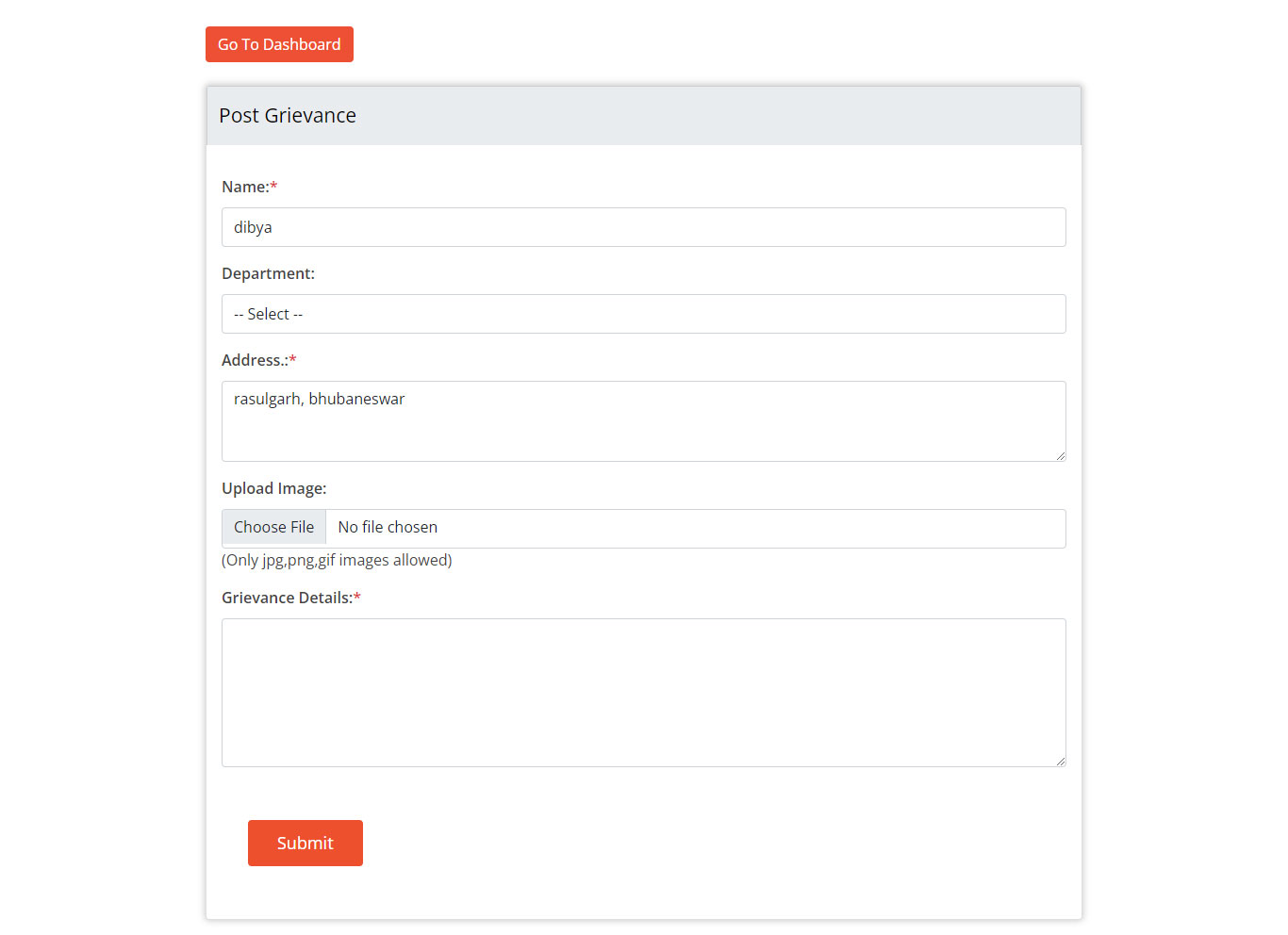 ତୁମର ଅଭିଯୋଗ ଦାଖଲ କରିବାକୁ ପଡିବ | ଥରେ ଆପଣ ଅଭିଯୋଗ ଦାଖଲ କଲେ, ଆପଣଙ୍କୁ ଏକ ସଫଳତା ବାର୍ତ୍ତା ମିଳିବ | ନାଗରିକମାନେ ସେମାନଙ୍କର ଅଭିଯୋଗକୁ ଆପ୍ କିମ୍ବା ୱେବ୍ ପୋର୍ଟାଲରୁ ଟ୍ରାକ୍ କରିପାରିବେ | ସେଠାରୁ ତୁମର ଅଭିଯୋଗର ସାମ୍ପ୍ରତିକ ସ୍ଥିତି ଜାଣିବ |
